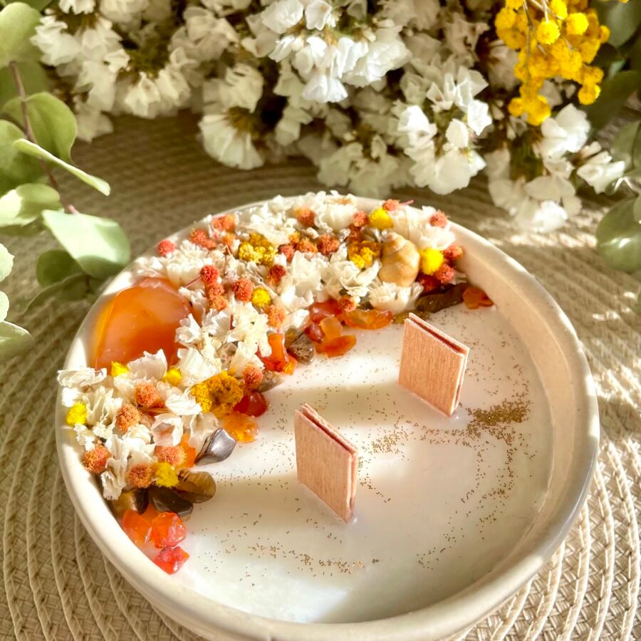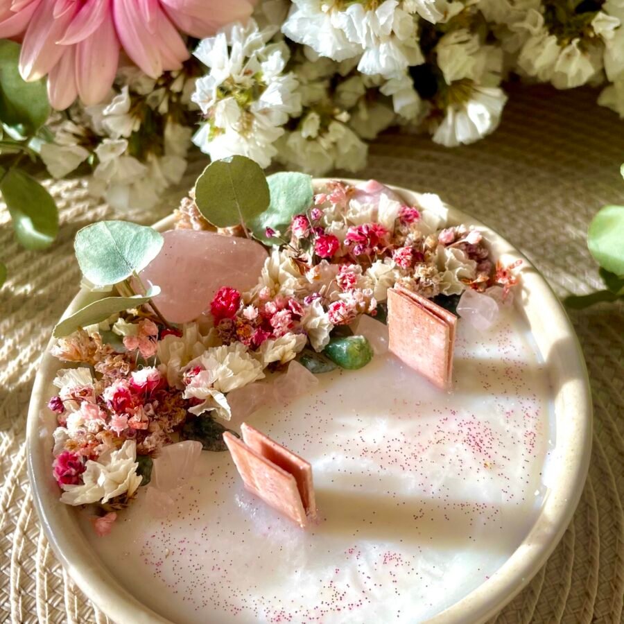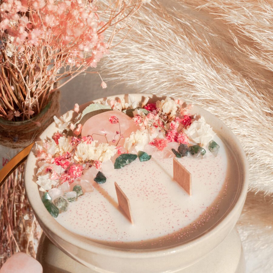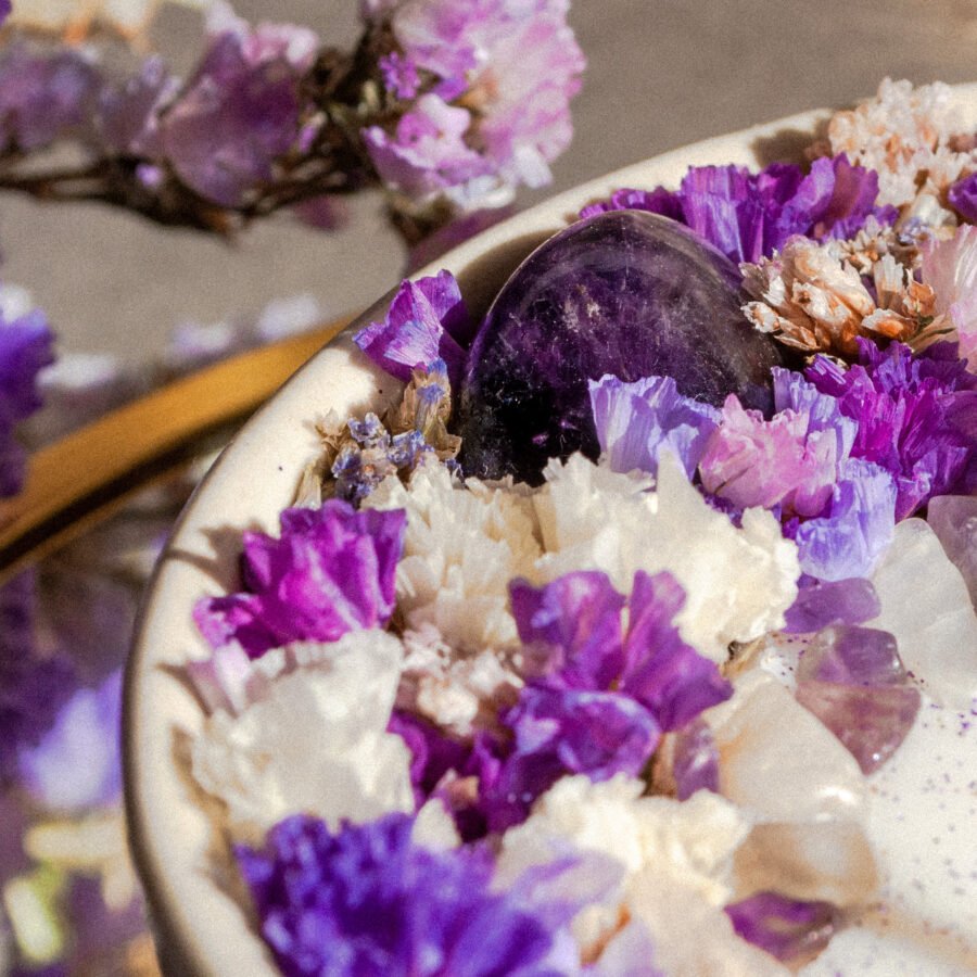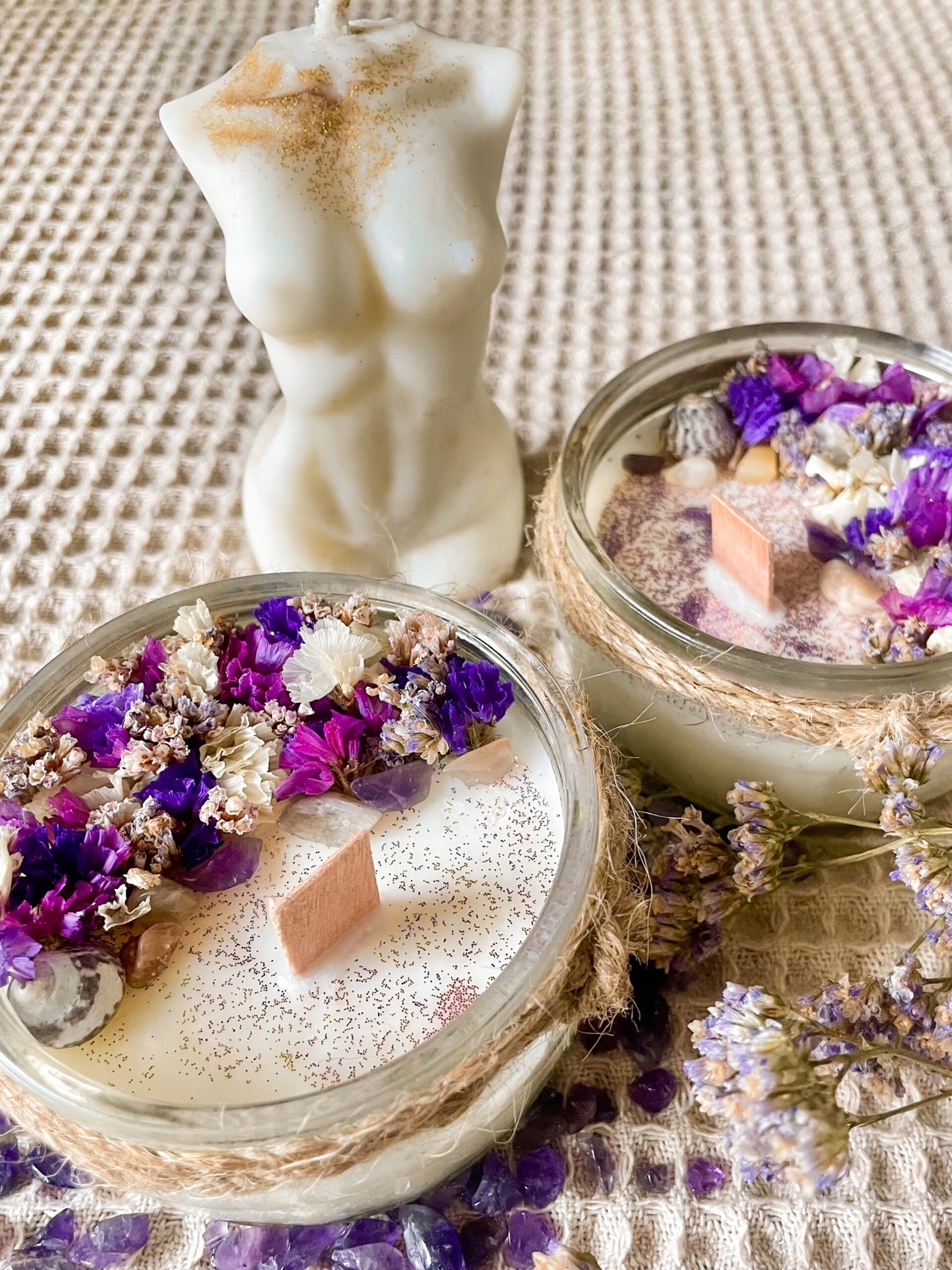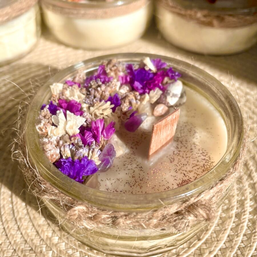 Mais, qu’est-ce que c’est une bougie énergétique ? C’est une bougie chargée d’une énergie, grâce à un minéral, et à l’intention qui lui est associée durant sa création, et son utilisation. Chaque bougie Purple Moon est unique, autant par la composition florale qui orne sa surface, que par l’unicité de la pierre qui est sollicitée. Plus qu’un objet de décoration, c’est une invitation à vous recentrer.